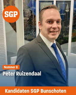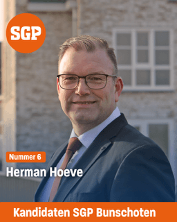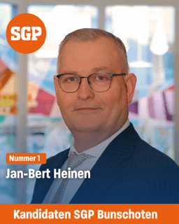 'Vanaf de herstart van SGP Bunschoten 16 jaar terug heb ik mij ingezet voor SGP. Als bestuurslid, fractielid, lid commissie ruimte en campagneactiviteiten. Bijbelse normen en waarden, betrouwbaar en koersvast. Met als vast kompas Gods Woord. Zo wil ik de samenleving dienen. Zo wil ik mij inzetten voor jongeren voor betaalbare woningen. En voor Seniorenwoningen'.